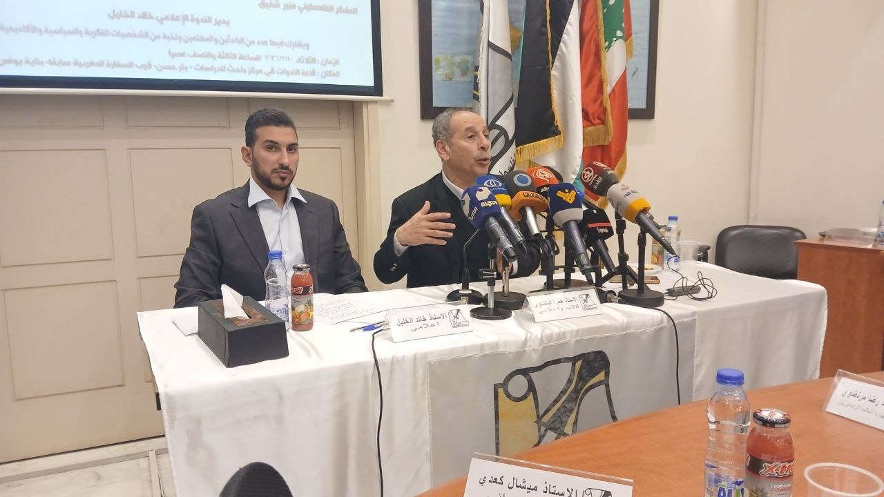 وقد أدار الندوة الإعلامي الأستاذ خالد الخليل، والتي حضَرها عدد من مُمَثّلي الفصائل الفلسطينية والأحزاب اللبنانية ونخبة من الشخصيات الفكريّة والأكاديميّة.